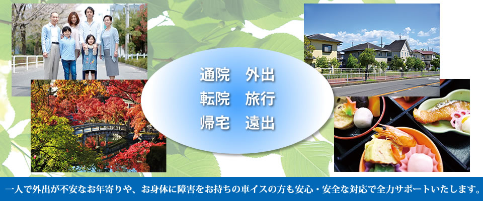 通院、入退院、一時帰宅。施設からの移動、お食事など